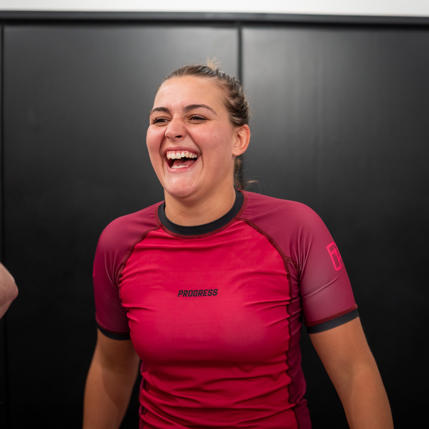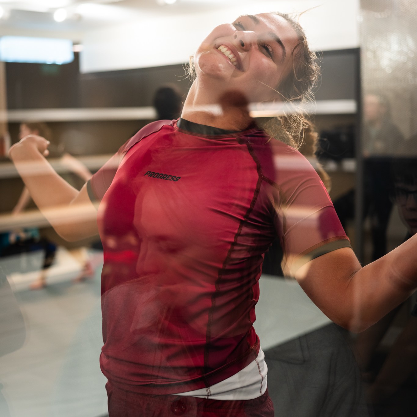 I was encouraged to go to BJJ by a friend who was really enthusiastic about training, and it felt like good timing, so I went to my first class. I was not in particularly good shape, and I just wore my old running kit and felt very out of place. I was lucky that I had some friendly faces in the class to help me settle in, and my very first drilling partner was Jade – who really helped me feel comfortable and get stuck in! I remember walking home after that first class with a massive smile of my face, genuinely thinking ‘this might be the sport for me?’